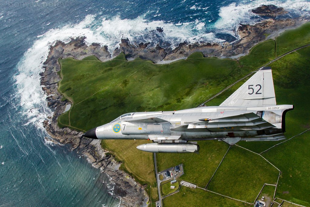 In 2015 the SwAFHF brought the Viggen to Ireland for the Shannon Air Display in July, and the Portrush Air Waves air show in September. IrishAirPics had the opportunity to do an air to air photoshoot with the Viggen over the rugged Atlantic coastline of County Clare while it was in Shannon, you can some of our pictures from this photoshoot in this article, along with some of our other archive Viggen pictures.