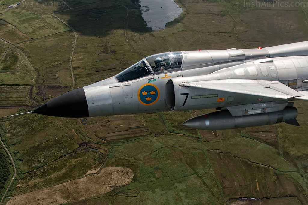 Stellan Andersson, Per Weilander, and Hakan Andersson from the SwAFHF, Derek Collins from Universal Aviation at Shannon, Niall Maloney, Airport Operations Director, Shannon Airport, Derek Coleman, Shannon ATC, and Se Pardy, Shannon & Bray Air Display Director, for their help and assistance taking the pictures of Viggen SE-DXN at Shannon.
