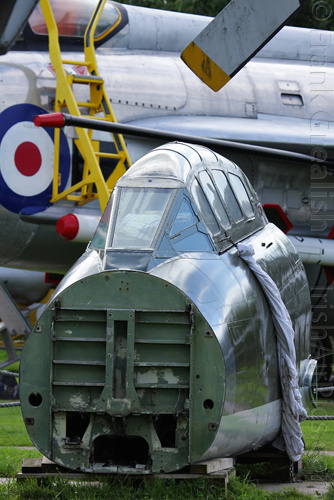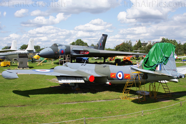 The Aeropark mostly displays aircraft of British origin, including the following aircraft: Argosy, Meteor TT.20, Vulcan B.2, Lightning F.53, Britten SA.1 Sheriff, Chipmunk T.10, Dove, Jet Provost T.4, Meteor NF13 (cockpit), Gazelle, Vampire T.11, Sea Venom FAW22, Canberra PR.7 (cockpit), Canberra T.17, Hunter T.7, Hunter GA.11, Hunter FR.10, Buccaneer S.2B, Spitfire IX (FSM), Vanguard 953C (cockpit), Varsity T.1, Viscount 807 (cockpit), V-1 flying bomb (FSM), Wessex HAS.1, Wessex HC.2, Wessex HU.5, Whirlwind Srs 3.