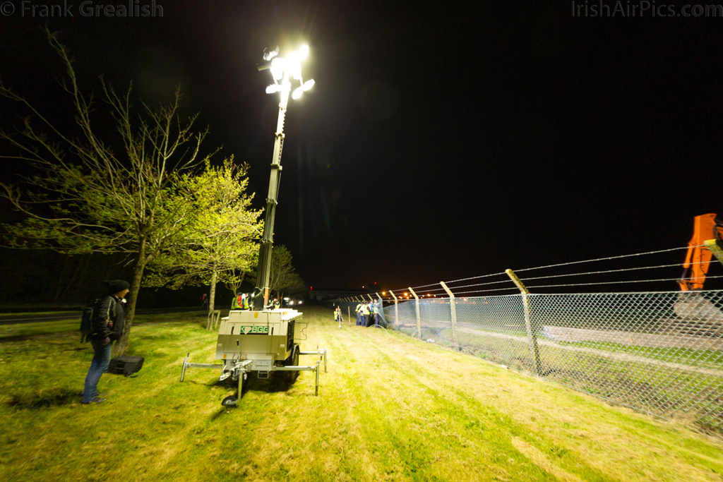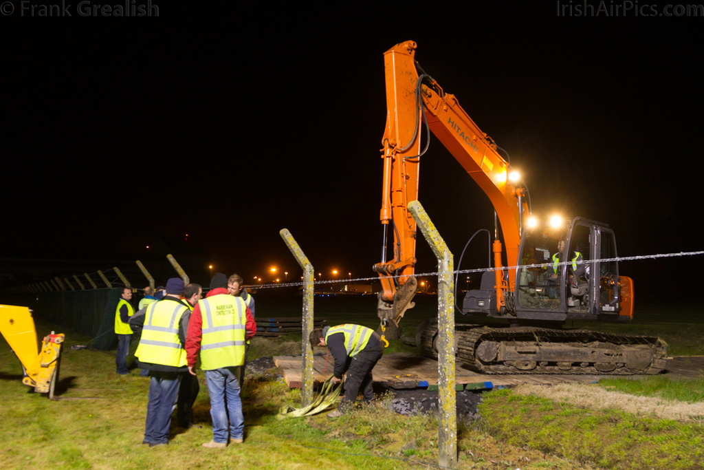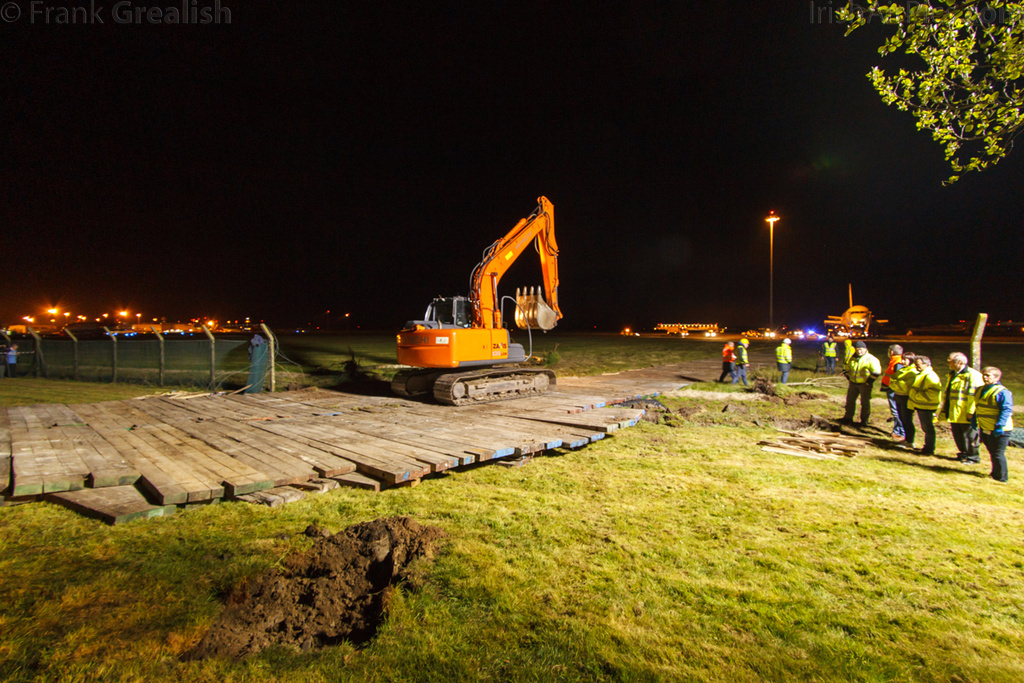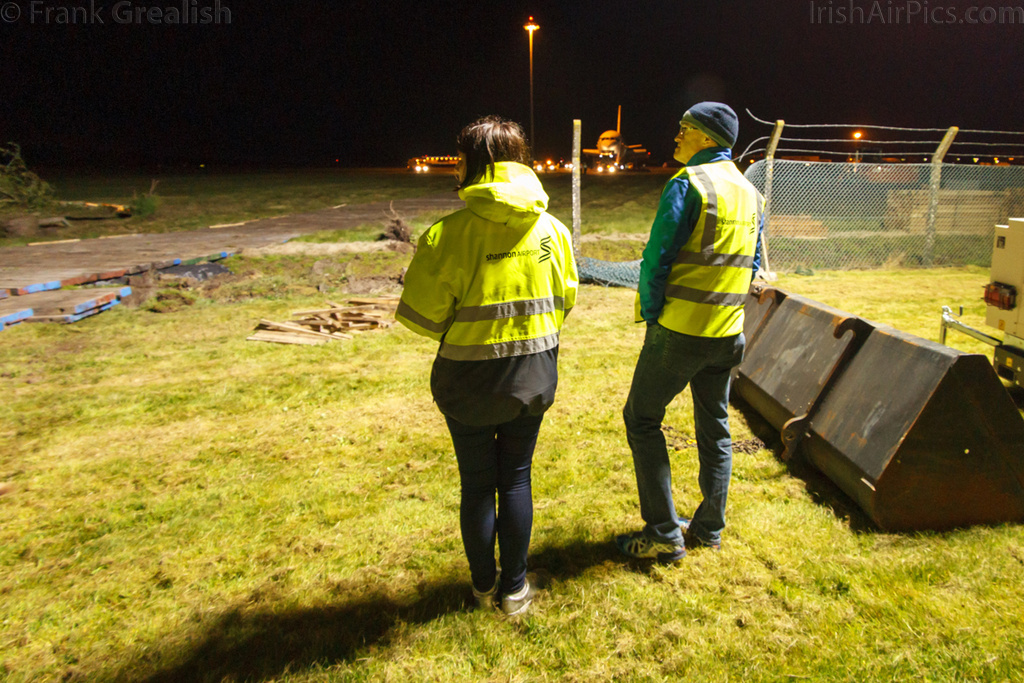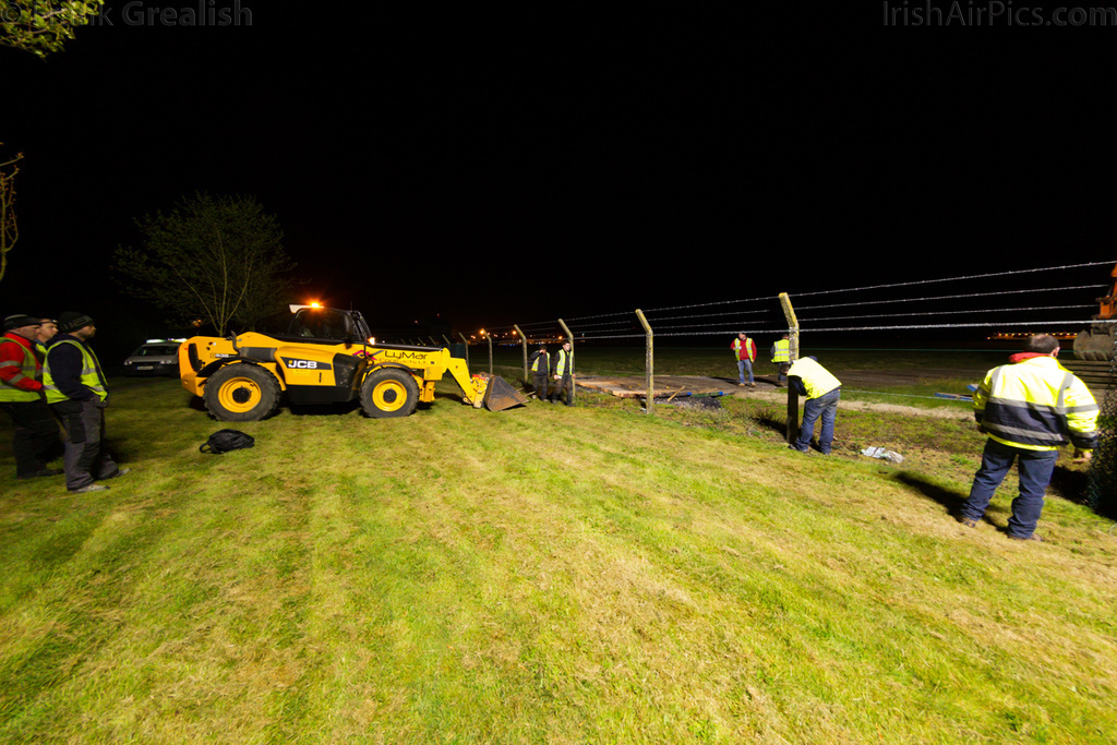 We arrived at Shannon Airport just before midnight on Sunday the 1st of May, to find workmen gathering to dismantle the airport perimeter fence and lay a temporary road in preparation for the move.
