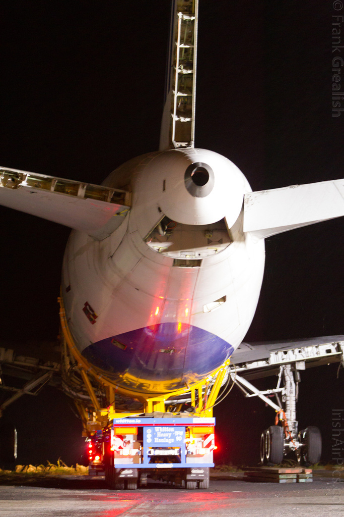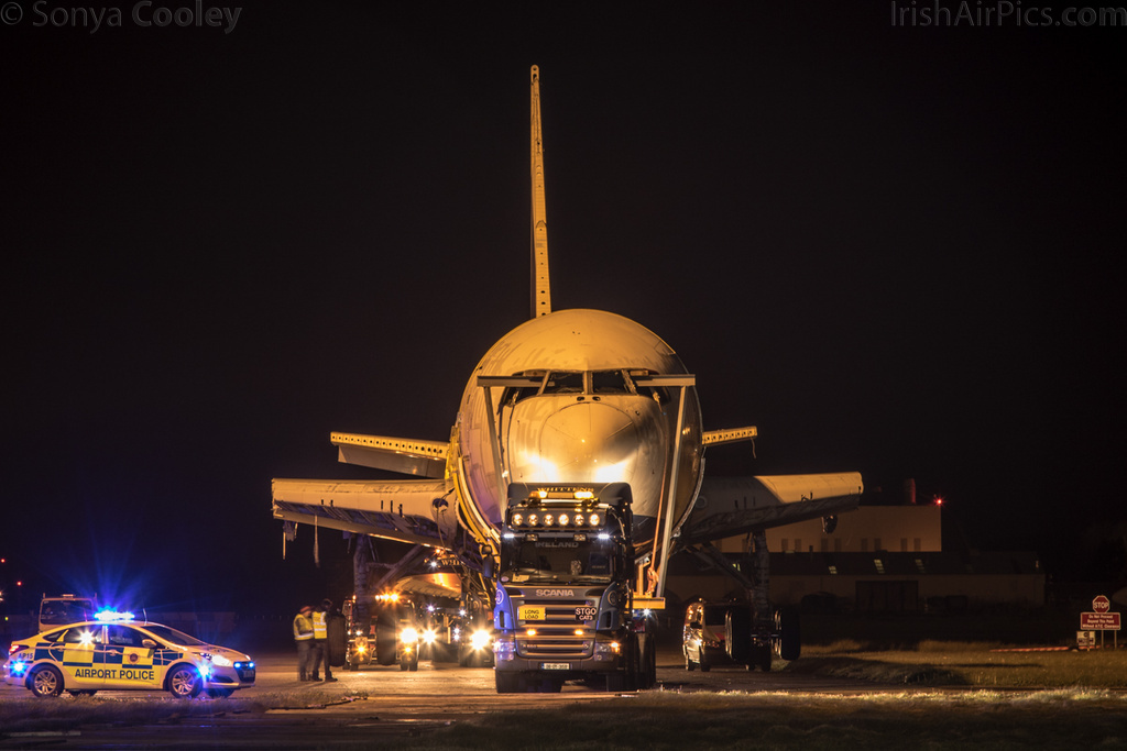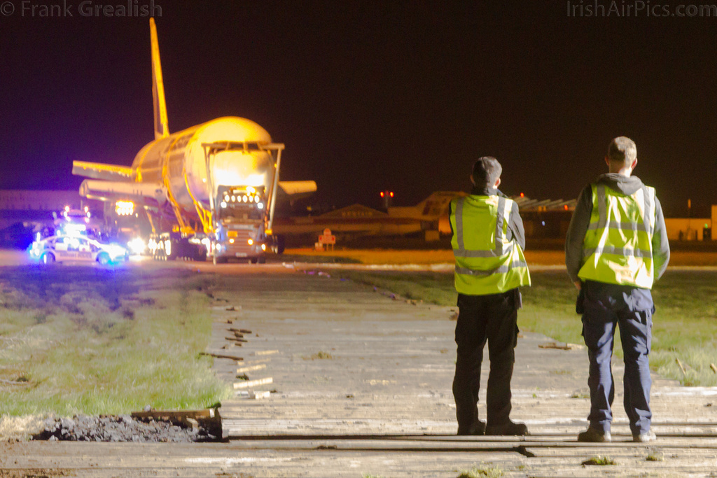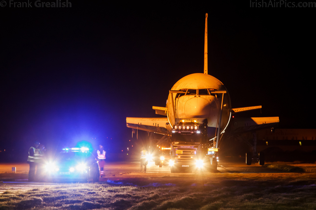 IrishAirPics paid a visit to Shannon Airport in the early hours of Monday 2nd of May to report on a very unusual aircraft movement, where an aircraft departed by road instead of by air.