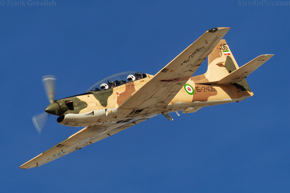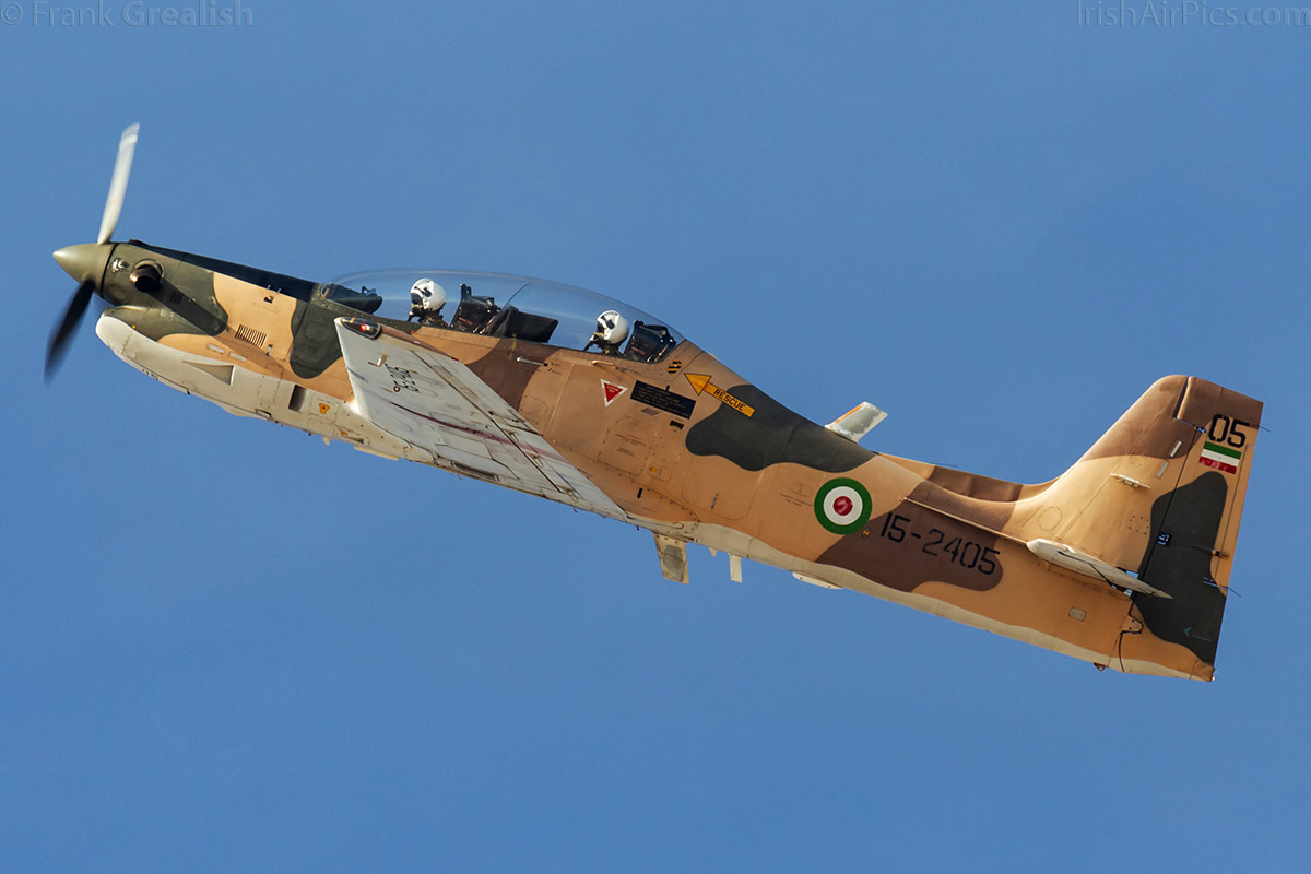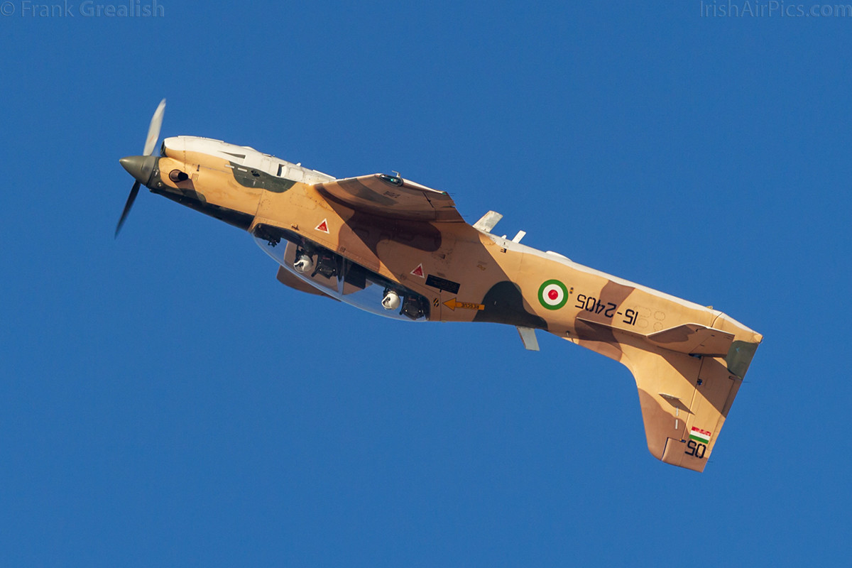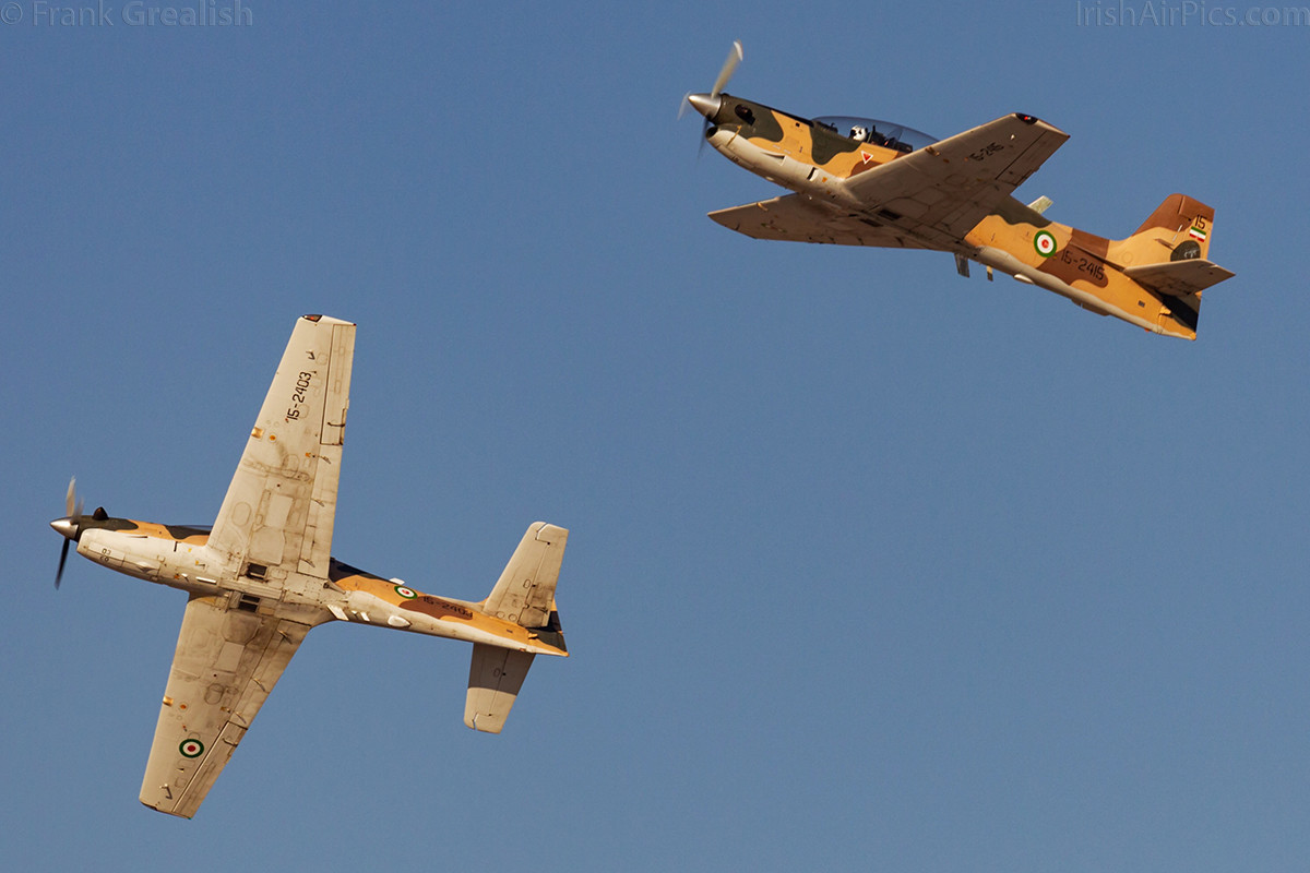 Once the Fitters finished their display it was the turn of the trainers to fly. A solo Air Force PC-7 displayed, follow by a trio of Revolutionary Guard EMB-312 Tucanos. Next up was a pair of Saeqeh fighters. The Saeqeh is an Iranian attempt to create a multi-role aircraft based on the F-5E/F Tiger, the most noticeable difference between the two types being the V-tail vertical stabiliser. Another low and fast display, the pair put on a nice display, flying over the crowd at times.