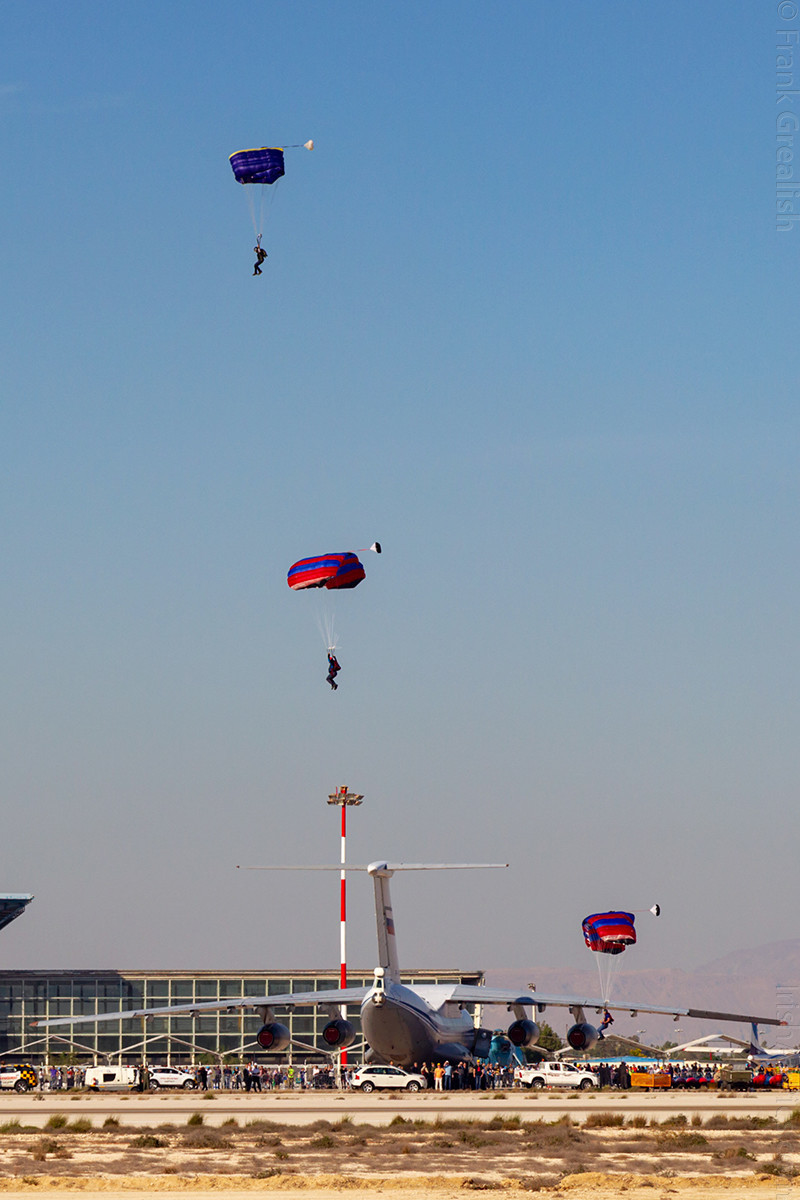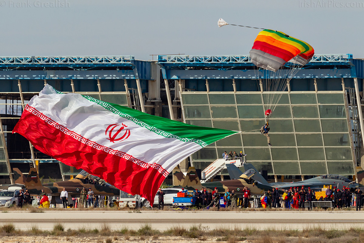 A two hour flying display was held from 2.30pm until 4.30pm daily, and with a few variations, the flying display followed the same format every day. The show opened with parachutists jumping out of a Revolutionary Guard Harbin Y-12 transport, and following on from that, a pair of Revolutionary Guard Sukhoi Su-22M4/Su-22UM3 "Fitter" jets performed low and fast pairs and solo flypasts, as well as making simulating airstrikes.
