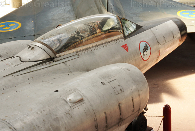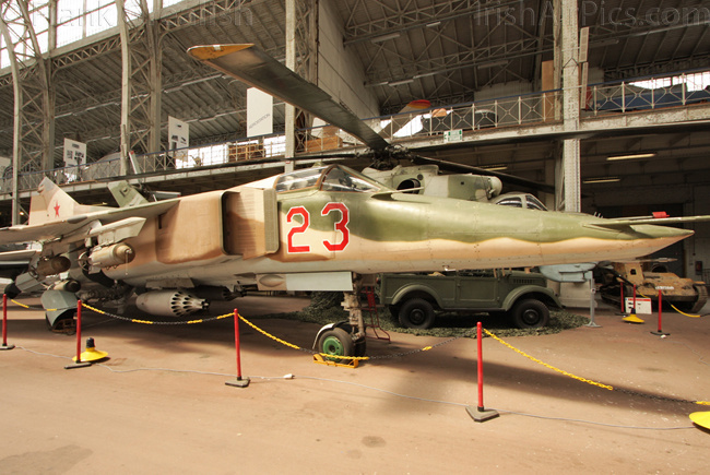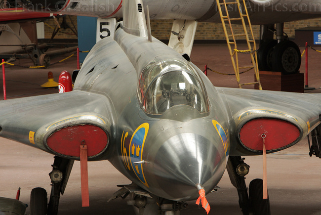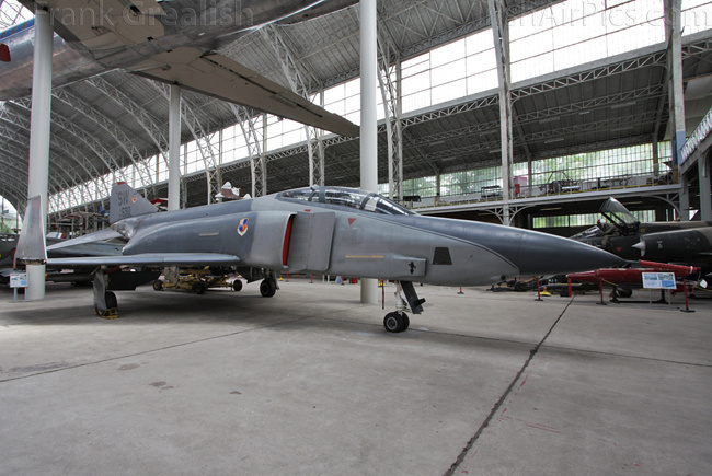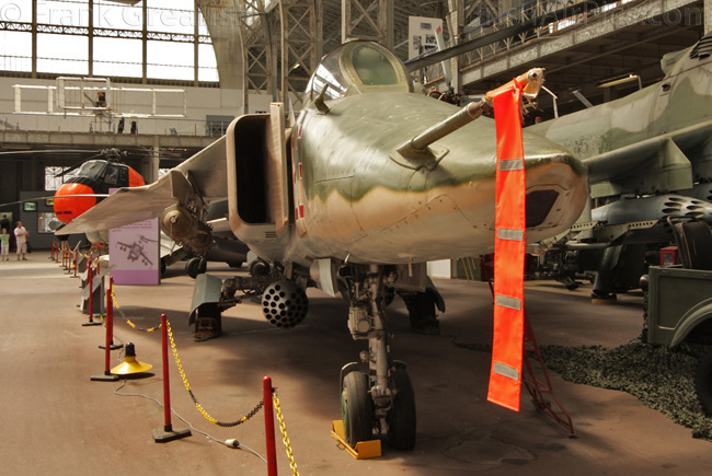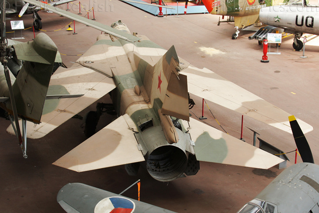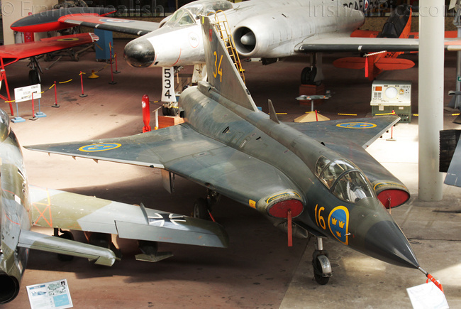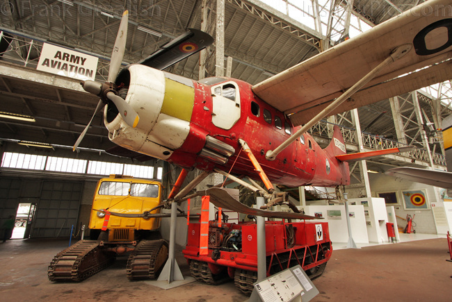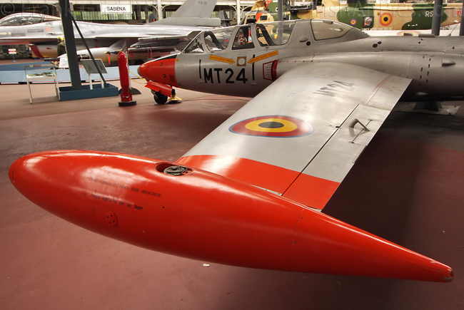 Foreign military aircraft on display include a USAF RF-4C Phantom, RAF Vampire T11, RAF Bolingbroke, Canadian CF-100 Canuck, French Ouragan, Swedish J35A Draken, German Fiat G91R, Portuguese F-86F Sabre, Russian MiG-23BN and Czech Mig-15bis. Dominating the civilian part of the collection is the former Sabena Caravelle jetliner mounted high above the other displays, other civilian aircraft displays include a Junkers Ju-52, Skandinavisk Aero Industri KZ-III, and a DHC-3 Otter that supported the Belgian Antarctic Expedition of 1957-58.