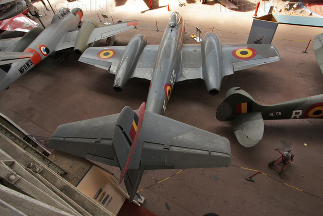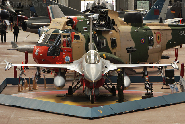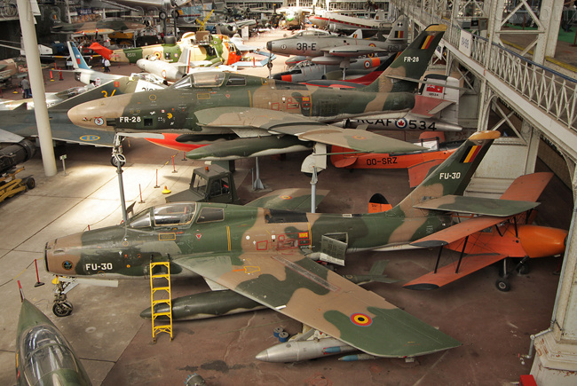 Everything from early days of flight up to the present time are present with an F-16 taking centre spot in the museum. Nestled in beside the F-16 is a recently delivered Belgian Air Force Sea King which is in a state of disassembly. Other former Belgian Air Force on display include a Harvard, Mosquito, T-33, Noratlas, Fouga Magister, Wessex SAR helicopter, Spitfire, Meteor F8, F-84F Thunderstreak, RF-84F Thunderflash, F-84G Thunderjet, Hunter F4, F-104G Starfighter, and a Mirage 5.