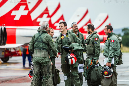 Patrouille Suisse crews chatting after landing at Baldonnel