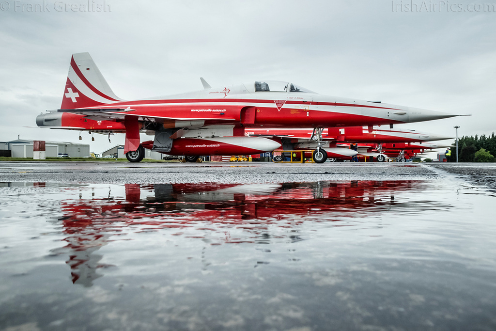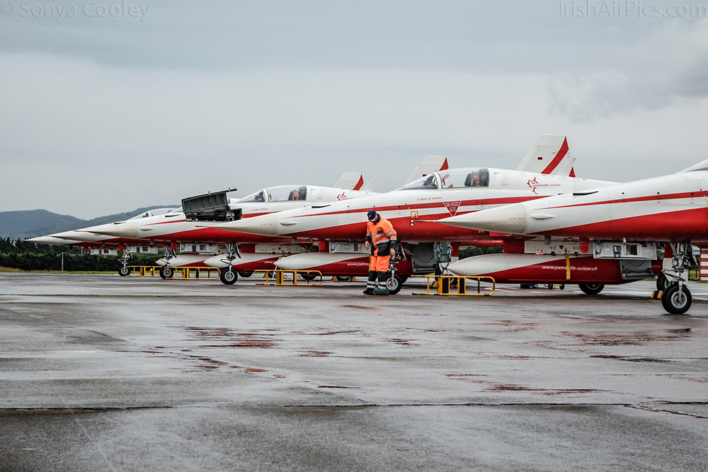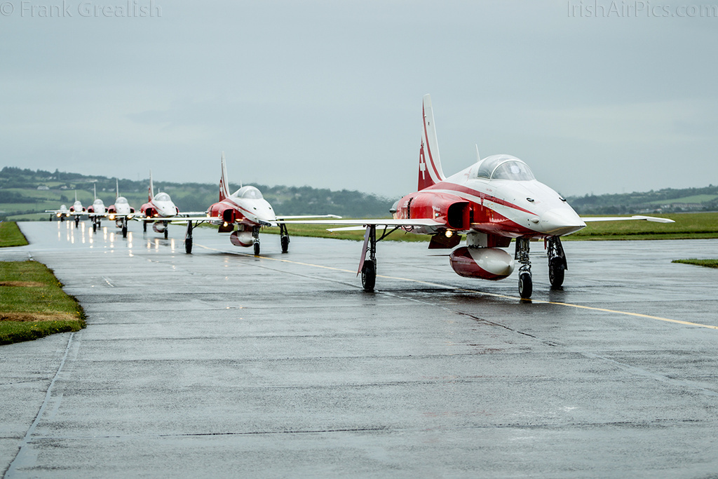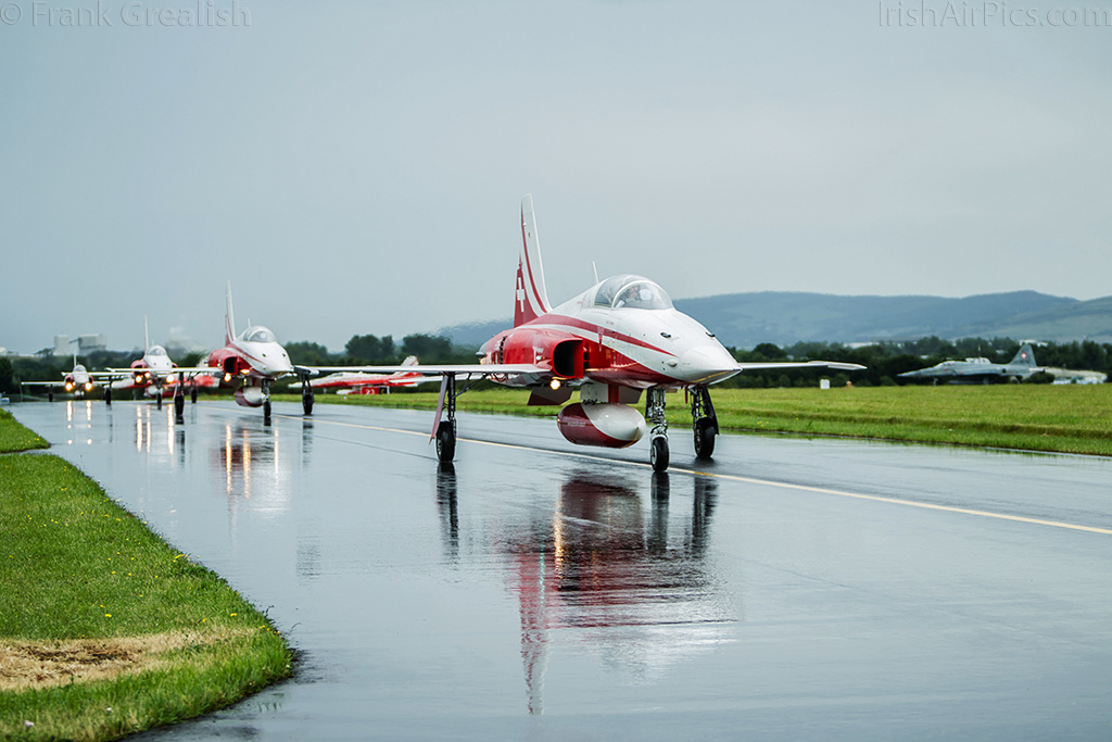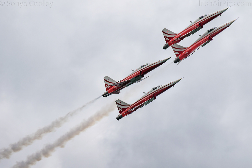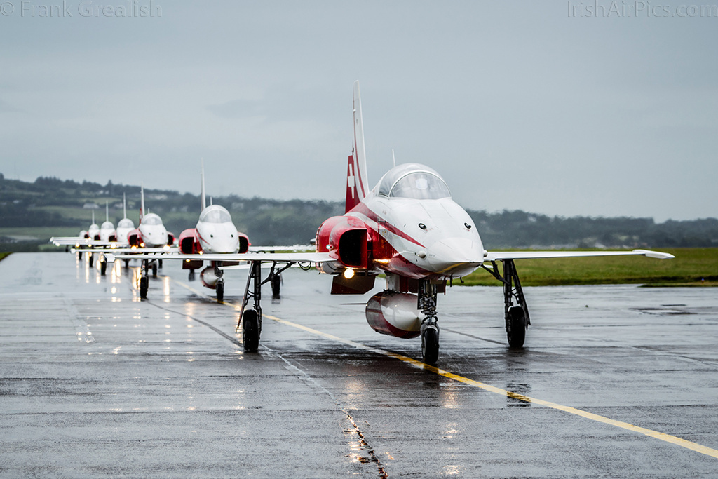 In July 2015 the Swiss Air Force jet demonstration team, the Patrouille Suisse, were in Ireland for the annual Bray Air Spectacular, and IrishAirPics was there to catch the team arriving at Baldonnel, their temporary home for the weekend, and we also saw them display at Bray.