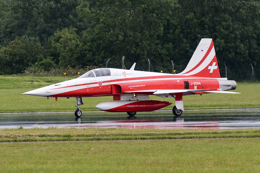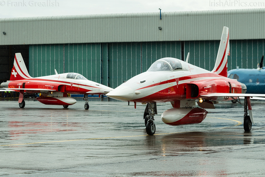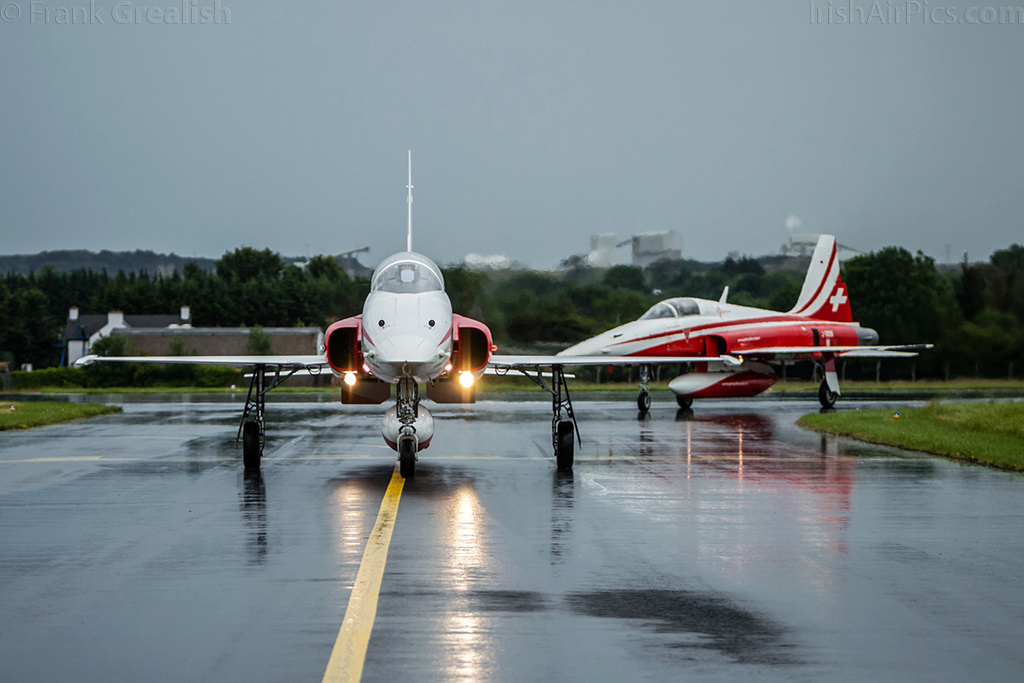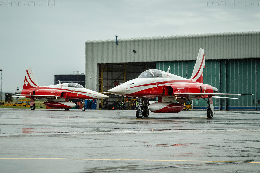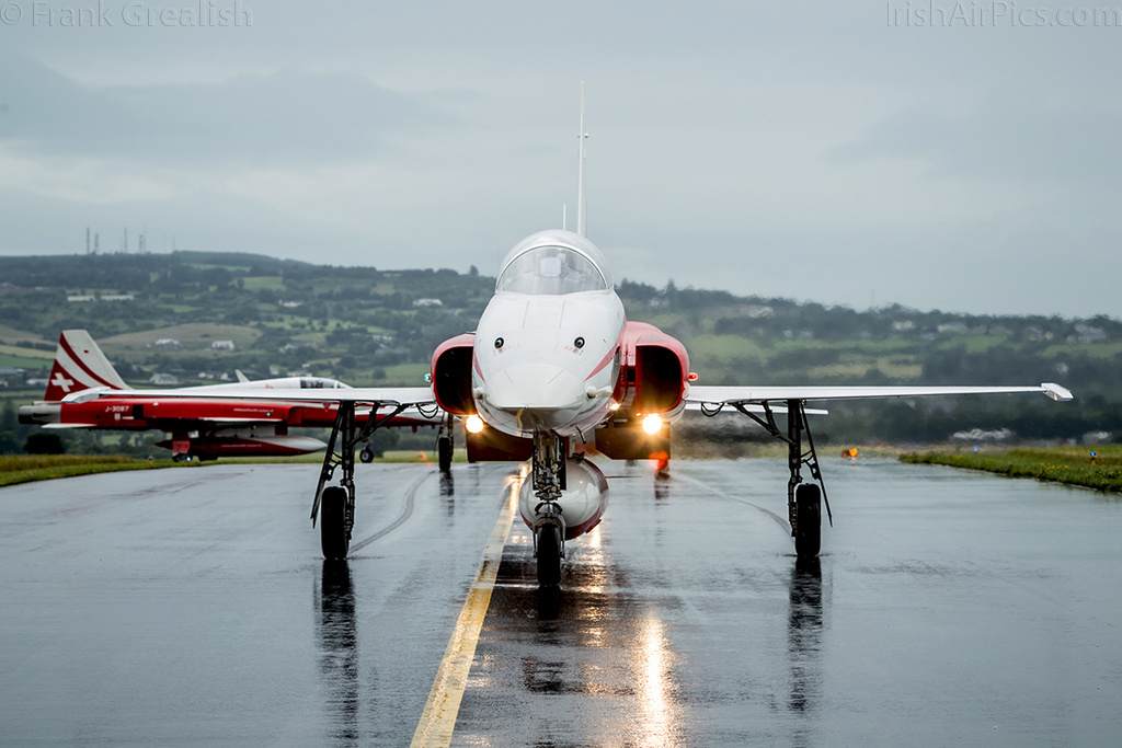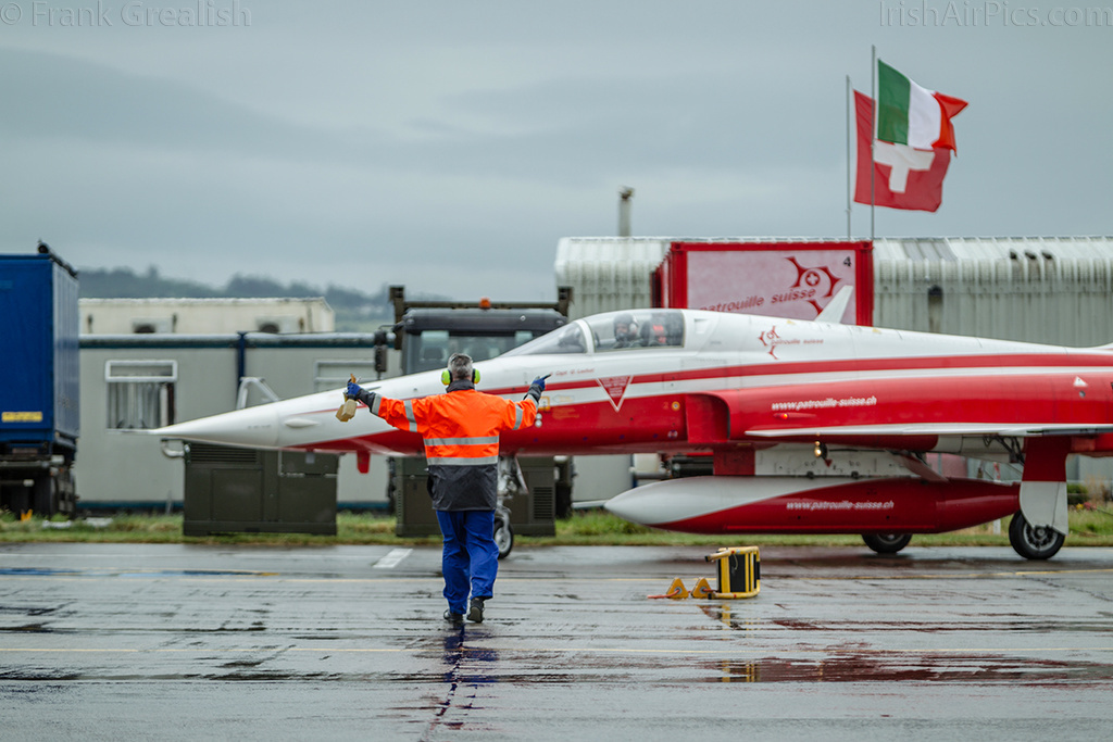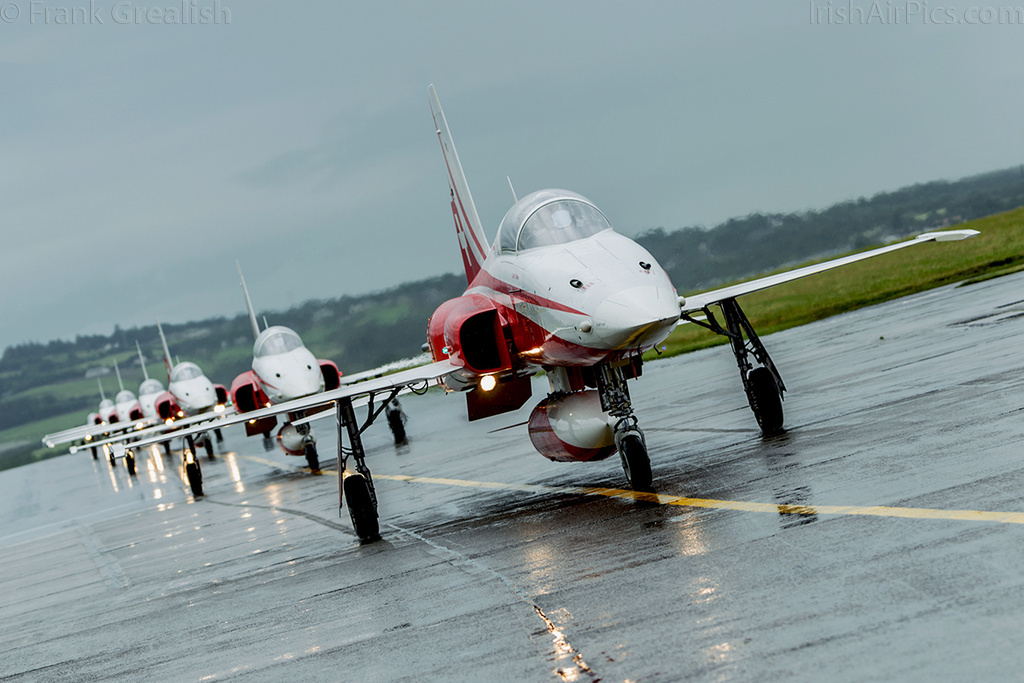 In July 2015 the Swiss Air Force jet demonstration team, the Patrouille Suisse, were in Ireland for the annual Bray Air Spectacular, and IrishAirPics was there to catch the team arriving at Baldonnel, their temporary home for the weekend, and we also saw them display at Bray.