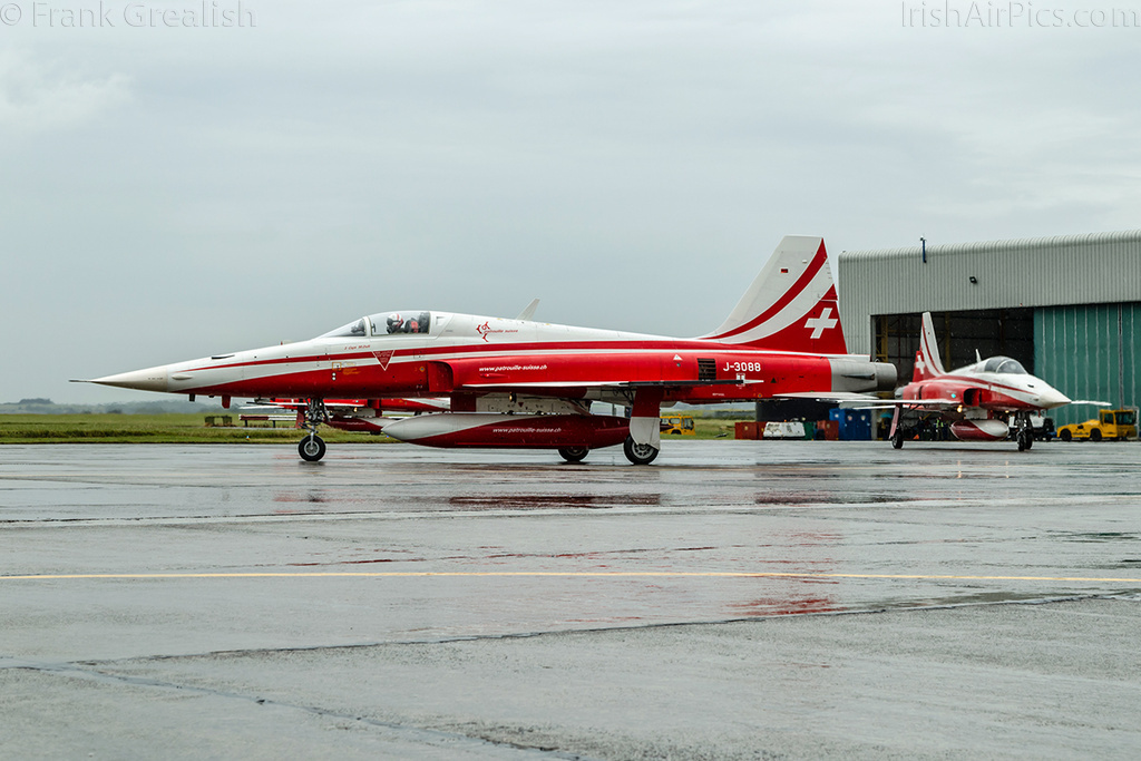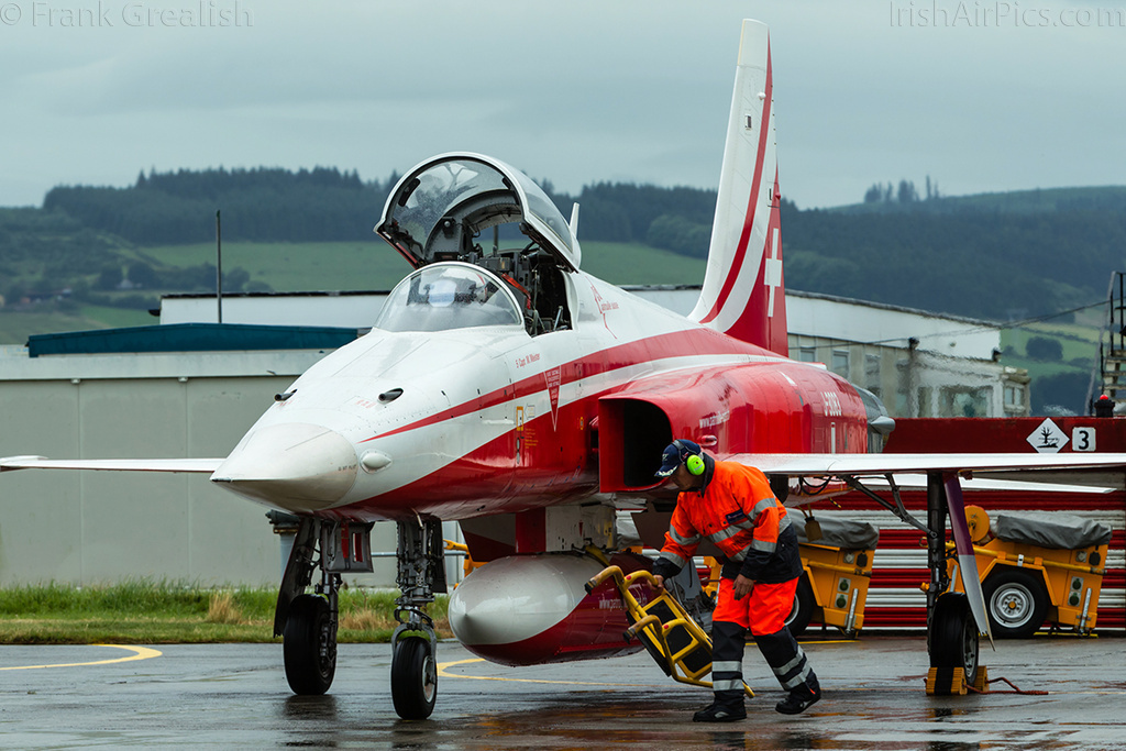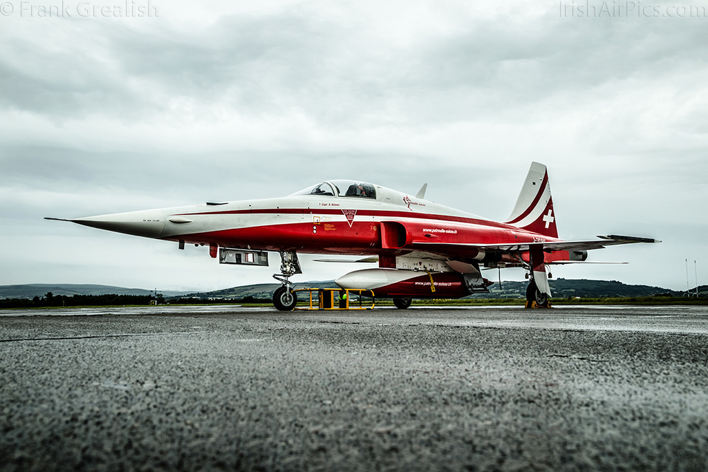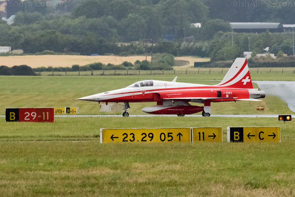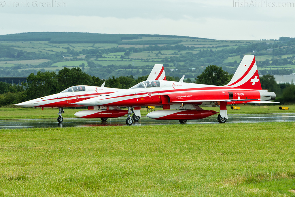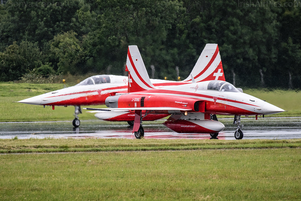 In July 2015 the Swiss Air Force jet demonstration team, the Patrouille Suisse, were in Ireland for the annual Bray Air Spectacular, and IrishAirPics was there to catch the team arriving at Baldonnel, their temporary home for the weekend, and we also saw them display at Bray.