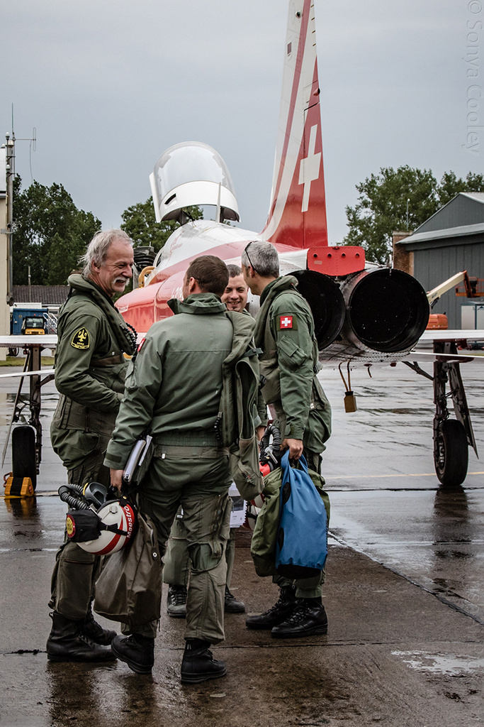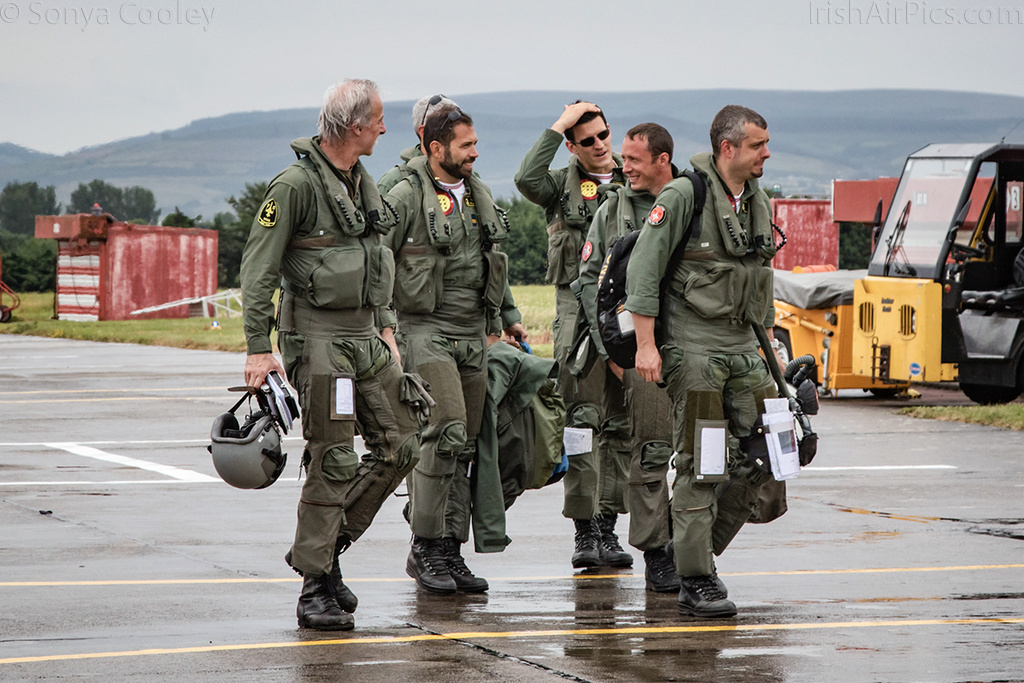 Patrouille Suisse crews chatting after landing at Baldonnel