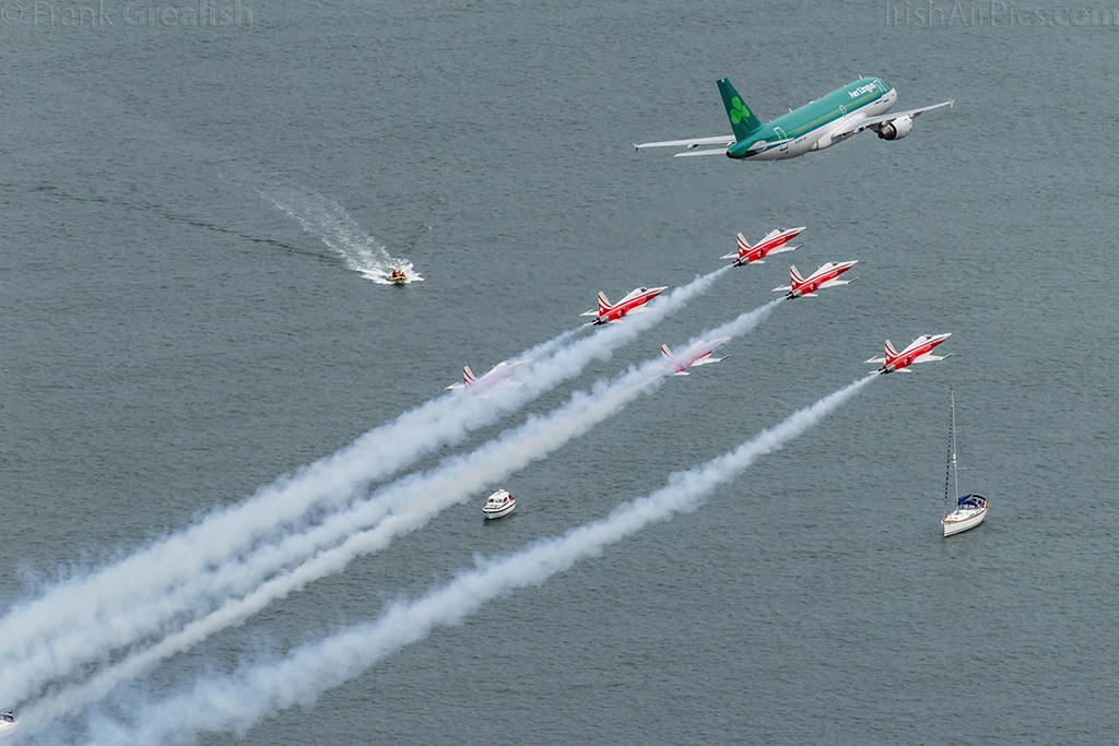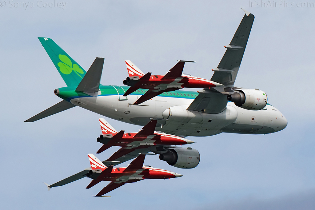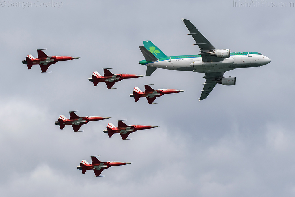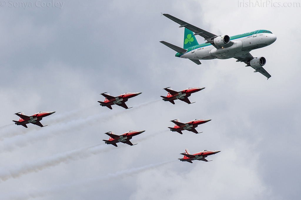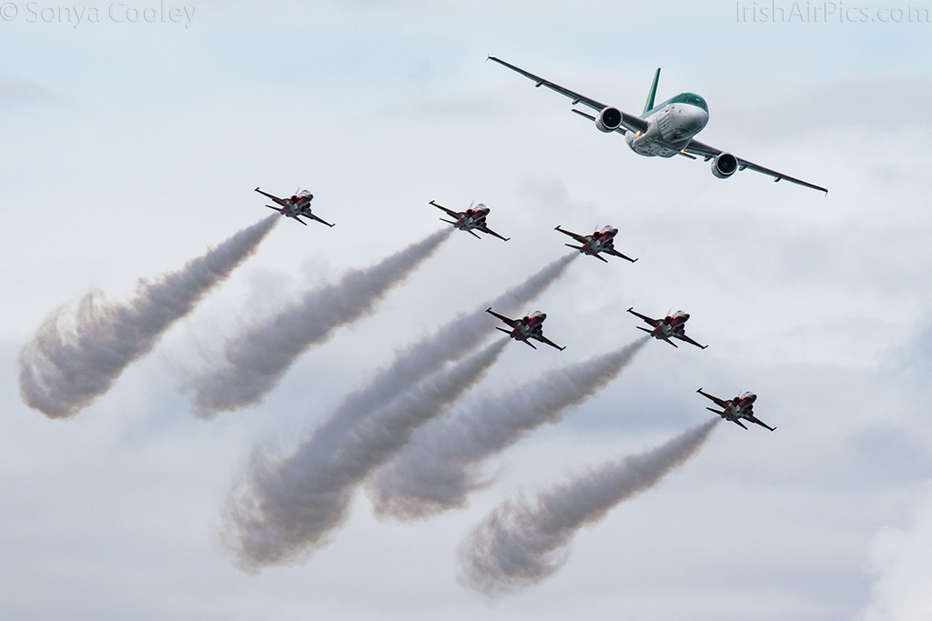The plan for airshow day would have Sonya cover the action from the ground, while Frank, courtesy of Se Pardy and the air show organisers, was to photograph the special Patrouille Suisse and Aer Lingus A319 formation as it arrived to the air show, from an Executive Helicopters Twin Squirrel flown by Billy Doyle.