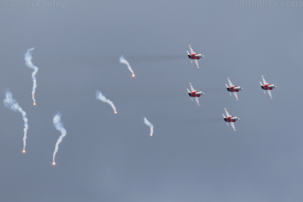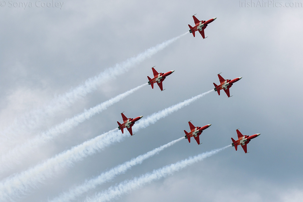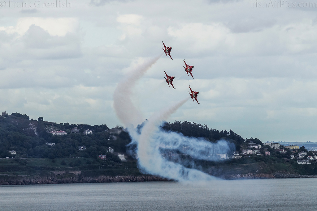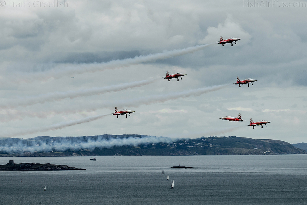 IrishAirPics wishes to thank Captain Sean McCarthy of the Irish Air Corps, Se Pardy, the organiser of the Bray Air Spectacular and Billy Doyle of Executive Helicopters for their help, assistance and flying during the visit of the Patrouille Suisse to Ireland.