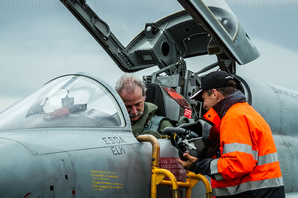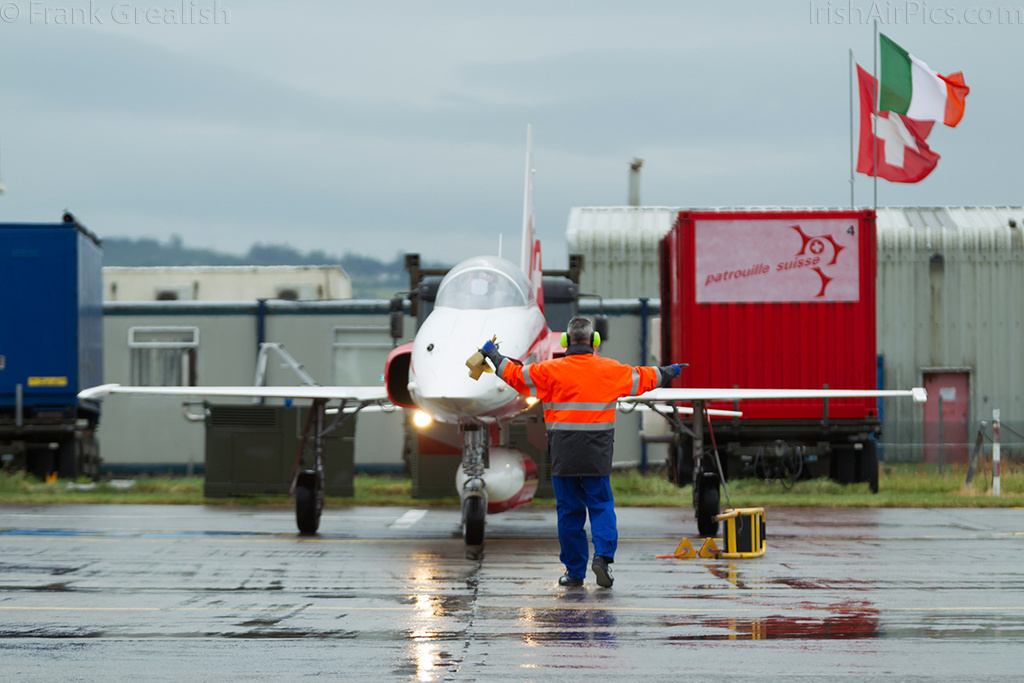 It was wet, very wet, when the team arrived, but courtesy of the Irish Air Corps I was placed in the back of the Follow Me car that led the team to their parking spaces on the ramp, and thankfully the car provided some shelter.