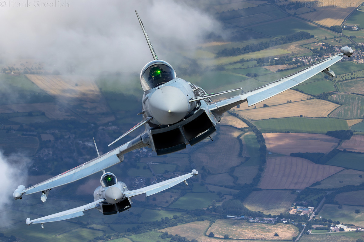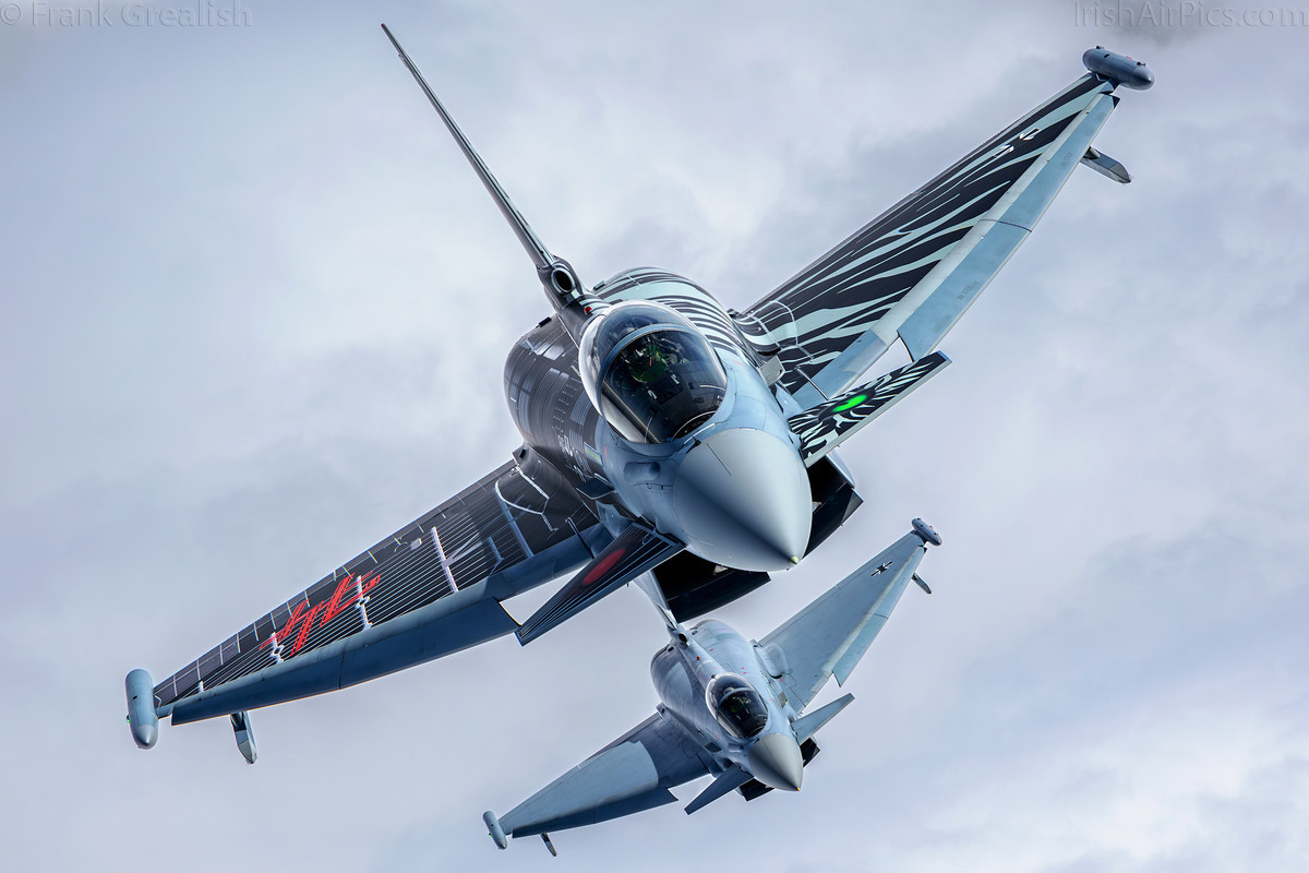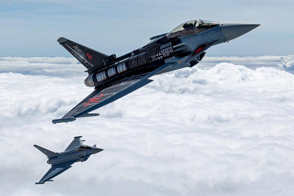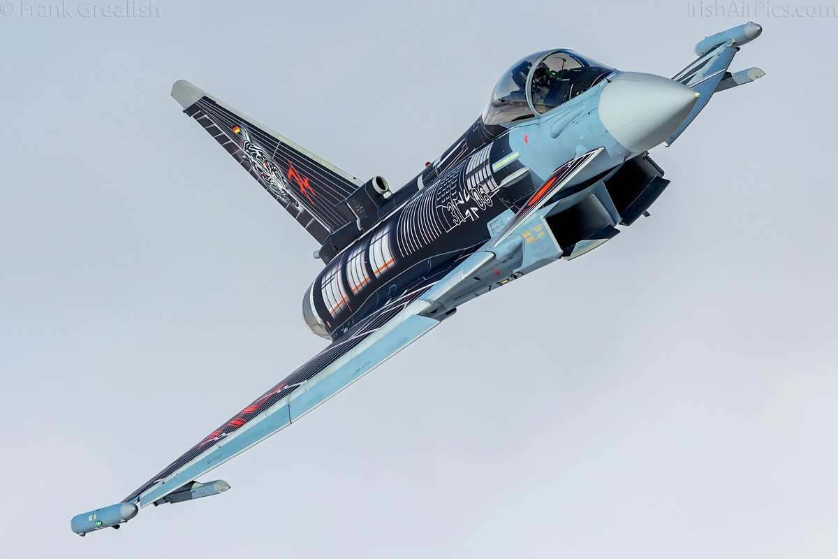 Moving to the more modern fast jets, two pairs of Eurofighter EF2000 Typhoons joined up, one pair was from the Luftwaffe, TLG 74 at Neuberg, and the other pair from the Royal Air Force, including Typhoon ZJ913 from the Typhoon Display Team (29 Squadron) based at RAF Coningsby, affectionately known as "Moggy".