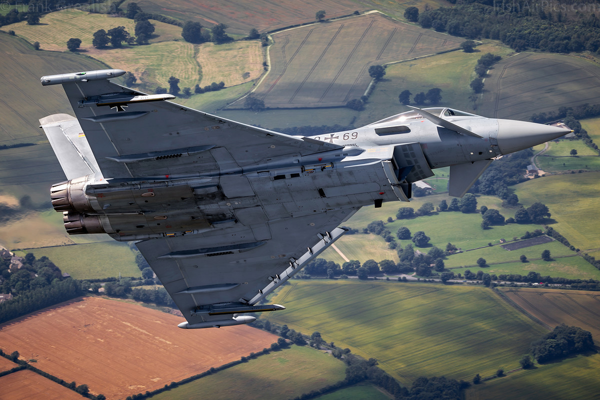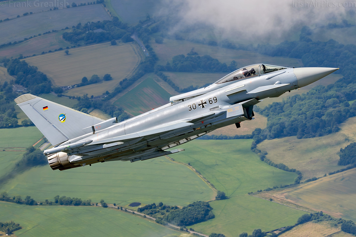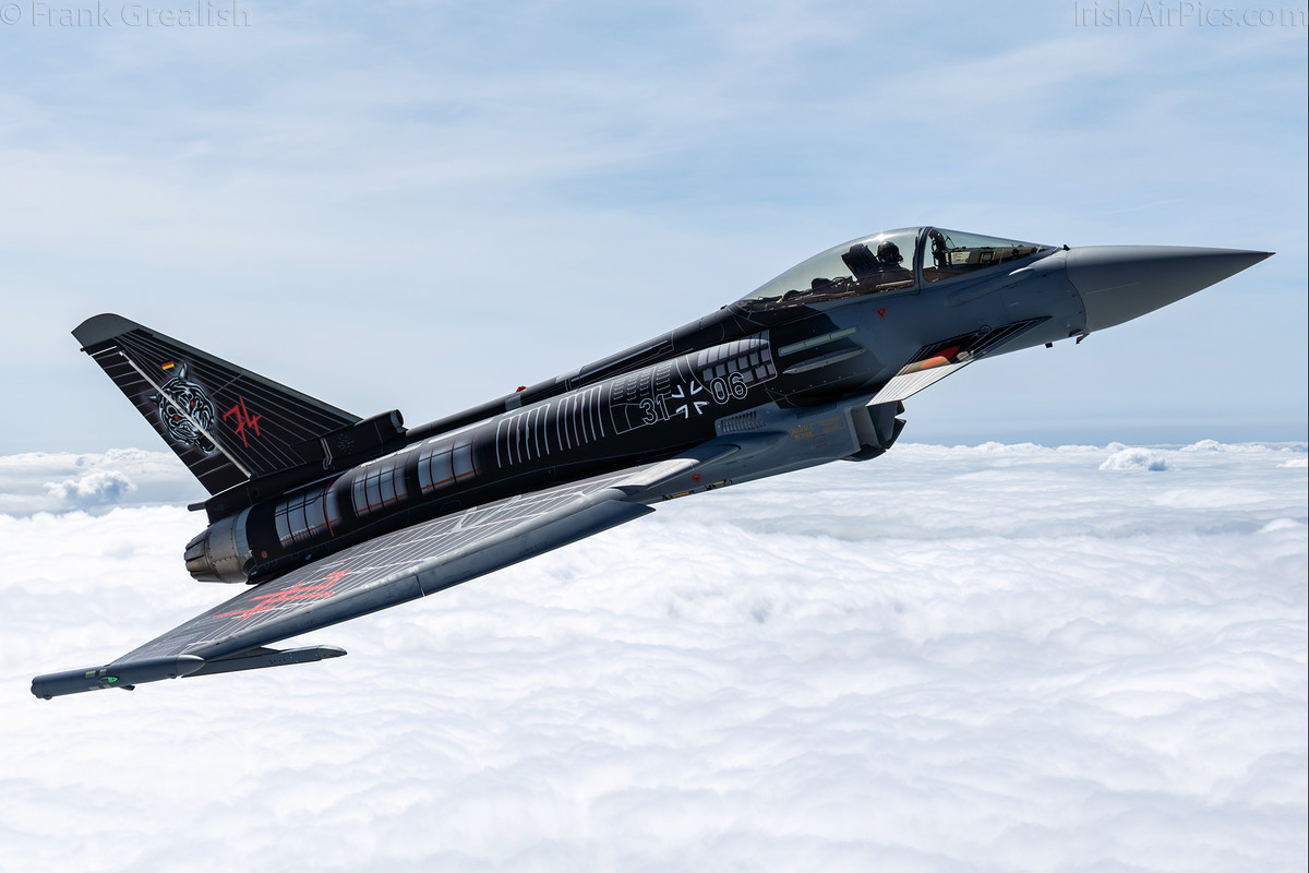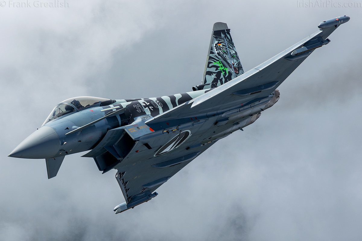 Moving to the more modern fast jets, two pairs of Eurofighter EF2000 Typhoons joined up, one pair was from the Luftwaffe, TLG 74 at Neuberg, and the other pair from the Royal Air Force, including Typhoon ZJ913 from the Typhoon Display Team (29 Squadron) based at RAF Coningsby, affectionately known as "Moggy".