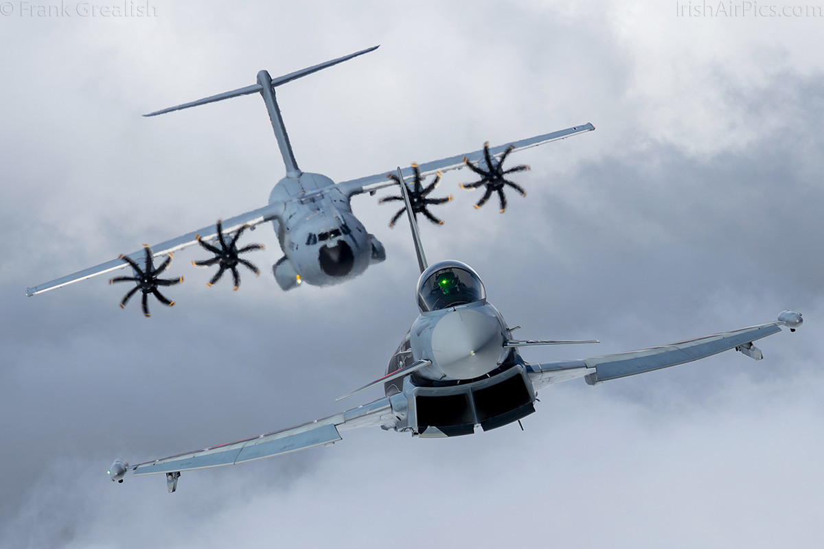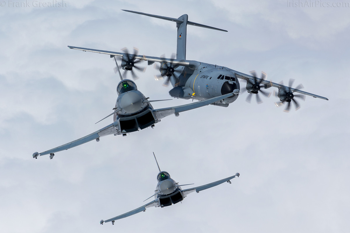 While the RAF Display Typhoon was resplendent in it's WW2 D-Day camouflage markings, the Luftwaffe EF2000s weren't to be outdone, they brought along a Luftwaffe Airbus A400M transport aircraft for company.