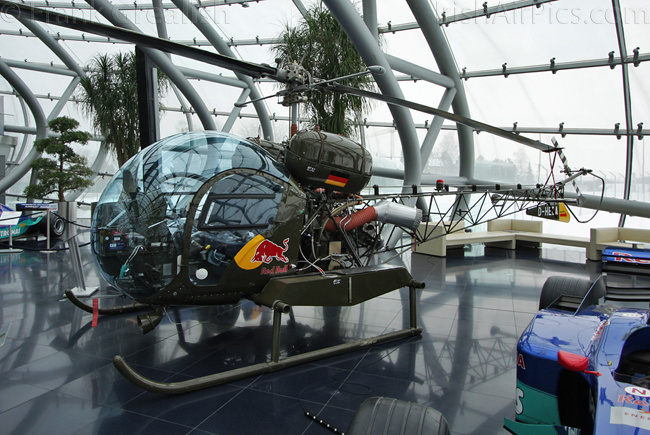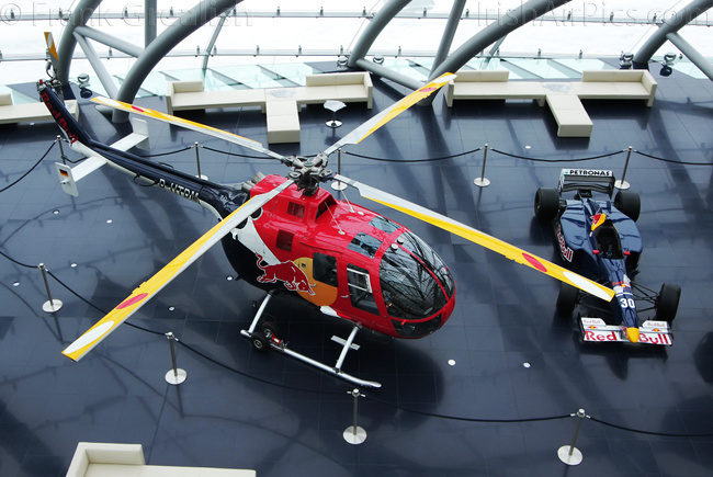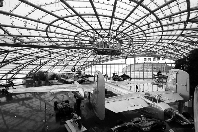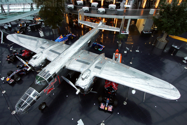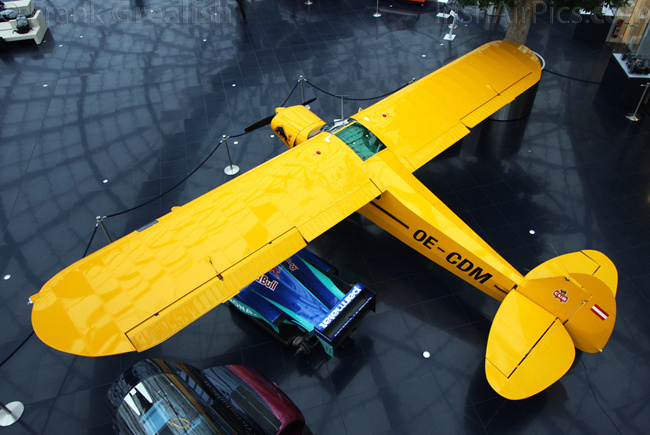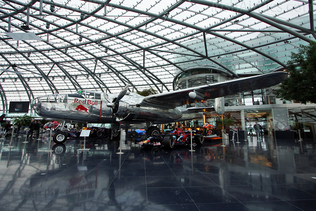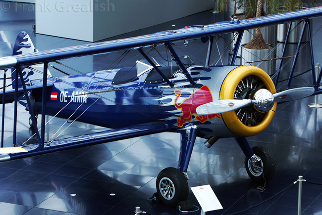 Red Bulls Hangar-7 at Salzburgs W. A. Mozart Airport is impressive, both in terms of its architectural style and also the exhibits housed within. The hangar is a steel framework covered with glass and has the stylised shape of an aircraft wing; the total weight of the structure is over 1500 tons. The hangar took 4 years to build and has been open to the public since late summer 2003. The hangar houses bars, restaurants, art, cars, bikes and of course aircraft. (For the purposes of this report I will concentrate on the aircraft)
