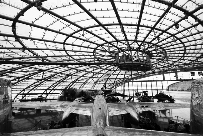 At night the aircraft and hangar are illuminated with lights that move and change colour so timing was of the essence when taking pictures. The biggest aircraft in the hangar, the B-25, was also the most polished, it also had the best lighting so I spent a bit more time photographing it. As you can see from the pictures it was illuminated at various times with white, red, blue & purple lighting.
