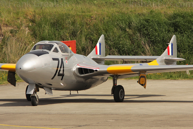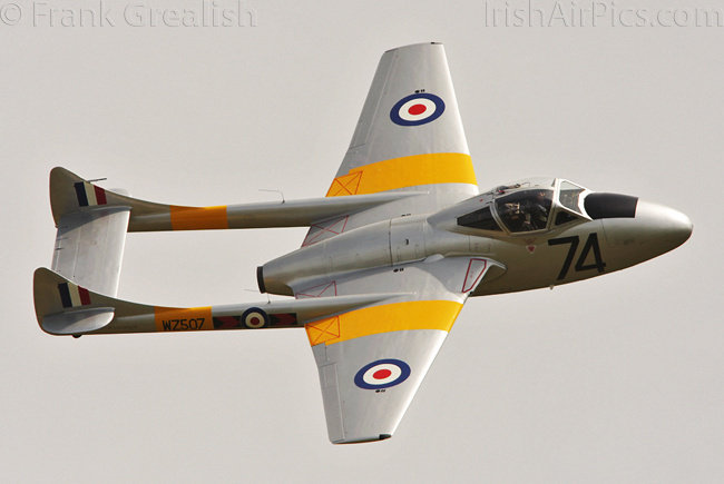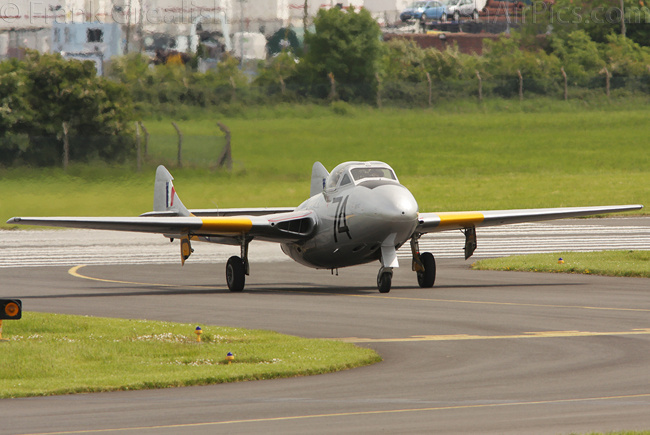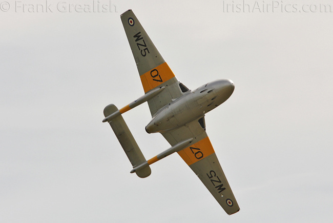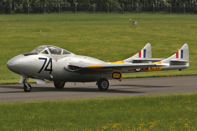 The Vampire Preservation Group's Vampire T.11 G-VTII, which was on static display earlier in the day, performed a flying display in the afternoon, flown by Mark Hooton.