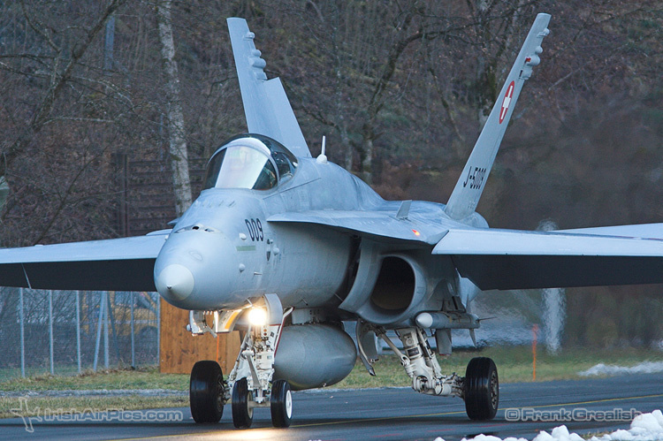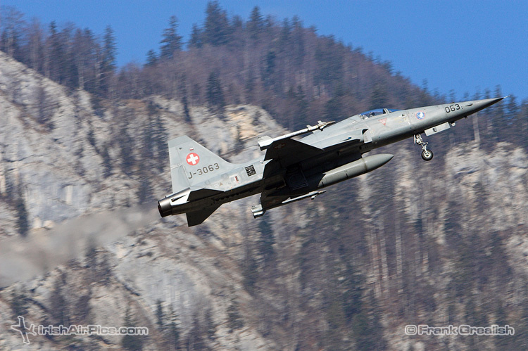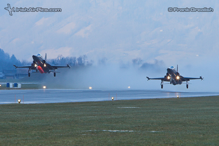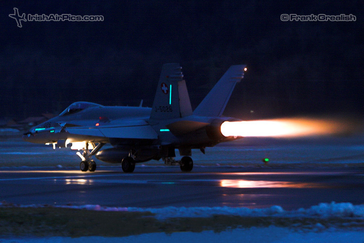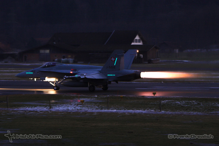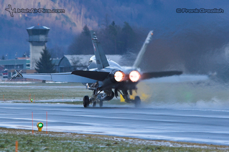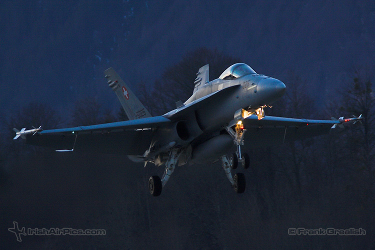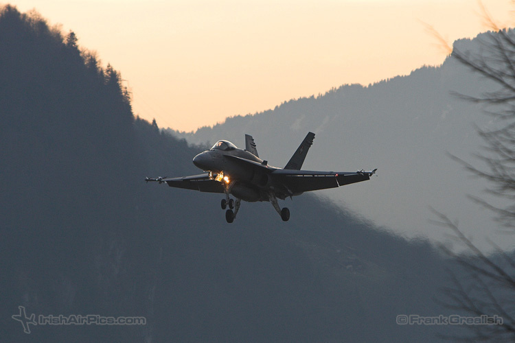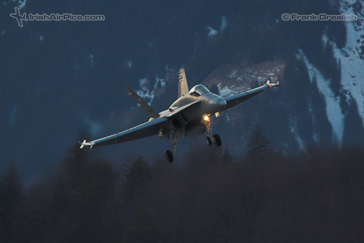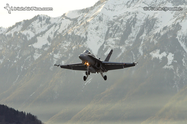 From January 14th February 1st 2008 Fliegerstaffel 11 flying with the McDonnell Douglas F-18 Hornet and Fliegerstaffel 8 flying the Northrop F-5 Tiger II held their annual Wiederholungskurs (refresher course) at Meiringen Air Base in Switzerland (Meiringen is approximately 45 minutes drive from Lucerne and 30 minutes drive from Interlaken).