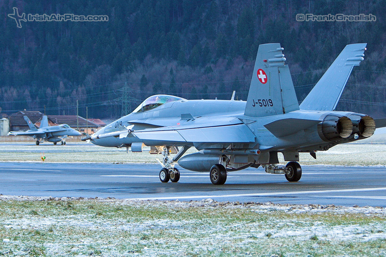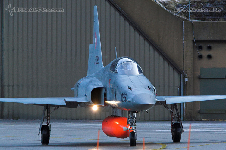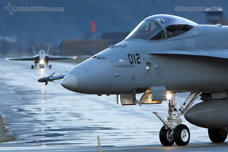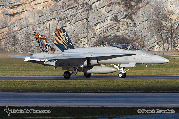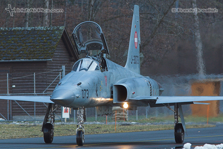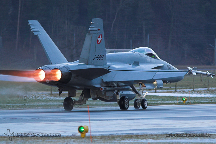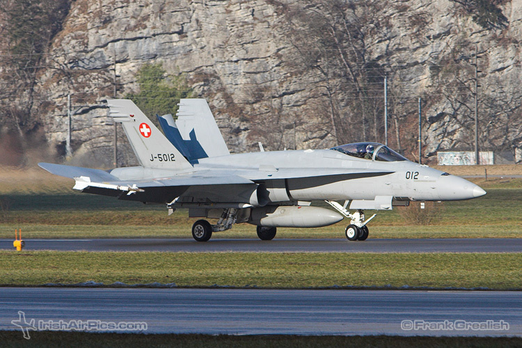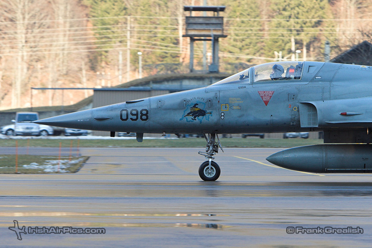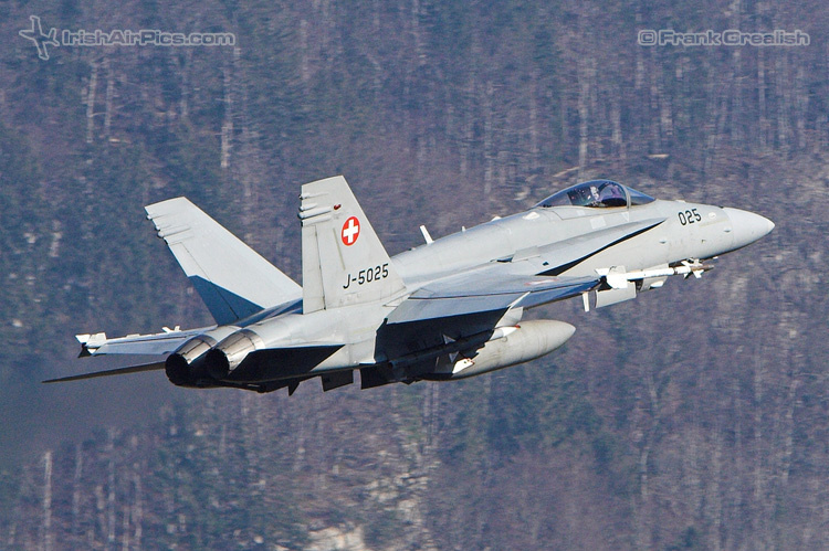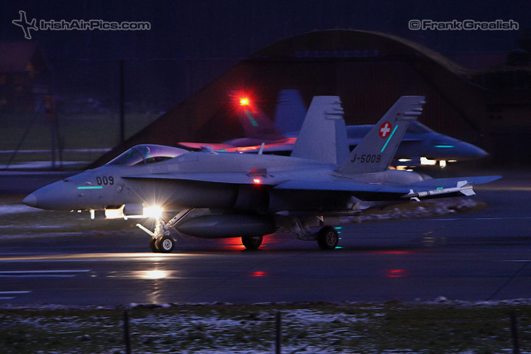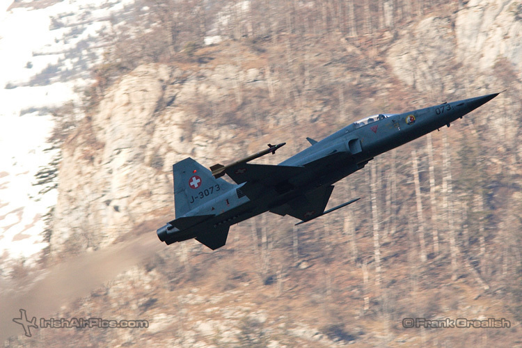 From January 14th February 1st 2008 Fliegerstaffel 11 flying with the McDonnell Douglas F-18 Hornet and Fliegerstaffel 8 flying the Northrop F-5 Tiger II held their annual Wiederholungskurs (refresher course) at Meiringen Air Base in Switzerland (Meiringen is approximately 45 minutes drive from Lucerne and 30 minutes drive from Interlaken).